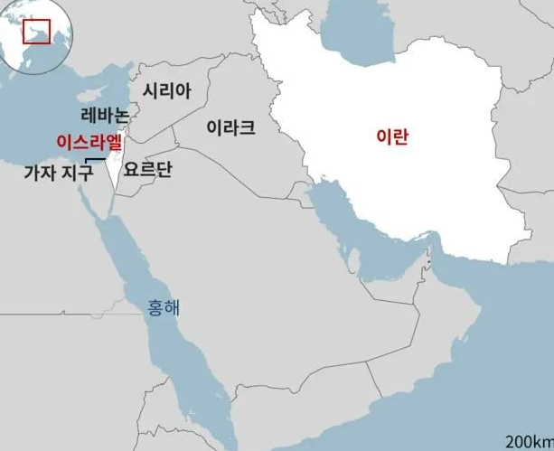 - 지도상 특징: 이란은 넓고 산악 지형 많음 / 이스라엘은 작지만 전략 요충지 다수