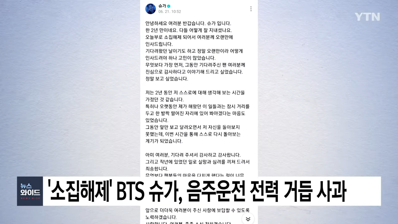 BTS를 오래 좋아해온 팬으로서, 슈가가 음주운전을 했다는 말 자체가 믿기지 않았거든요.