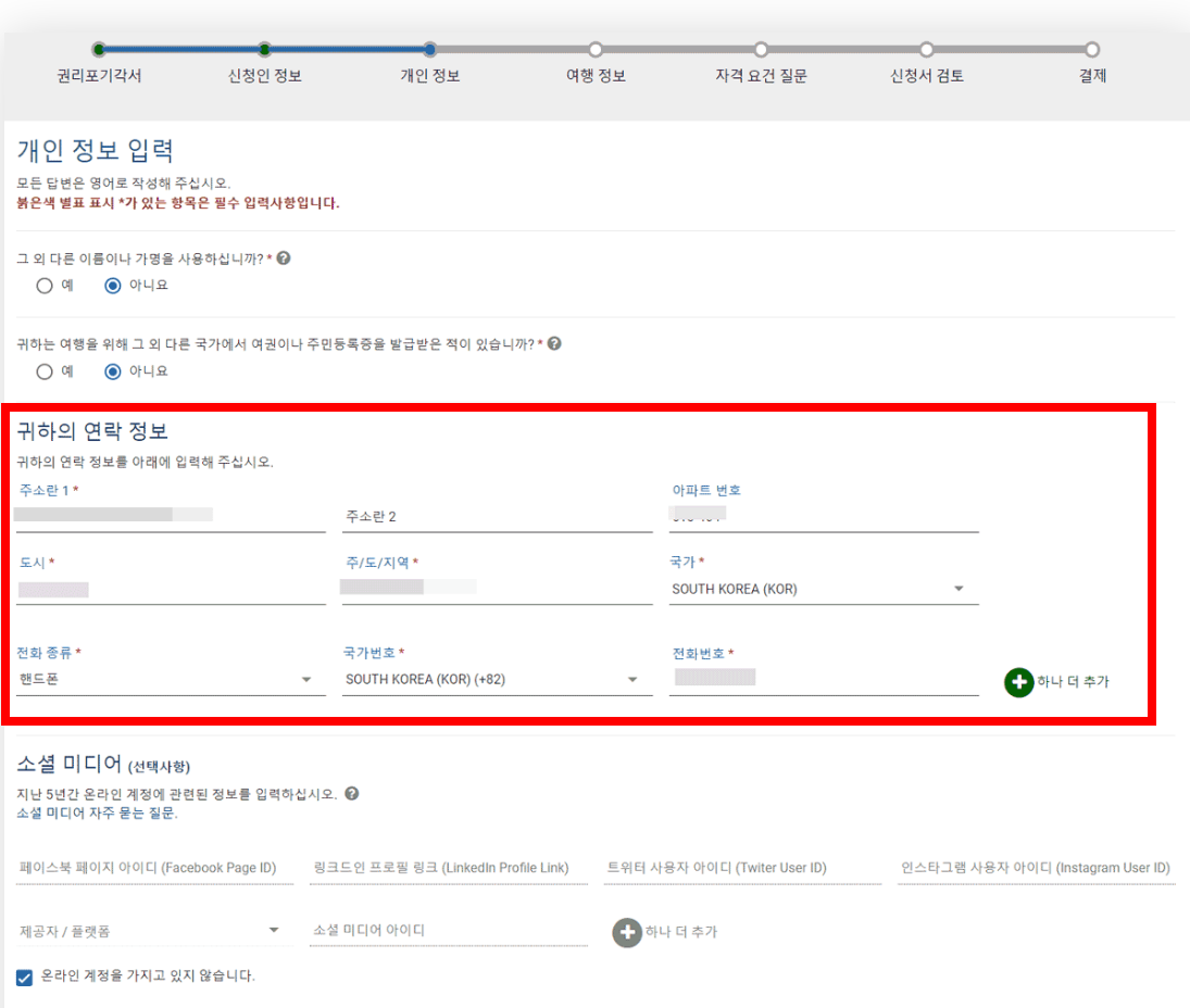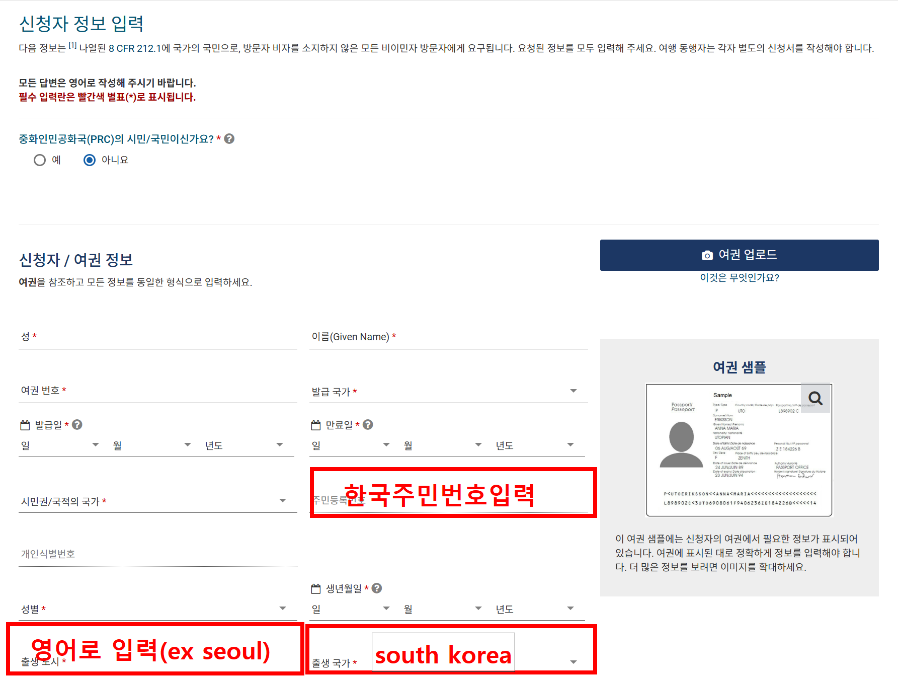 ❌ 아니요. 미국 ETA/ESTA 비자 신청 시 주민등록번호는 필요하지 않습니다. 여권 정보만 입력합니다.