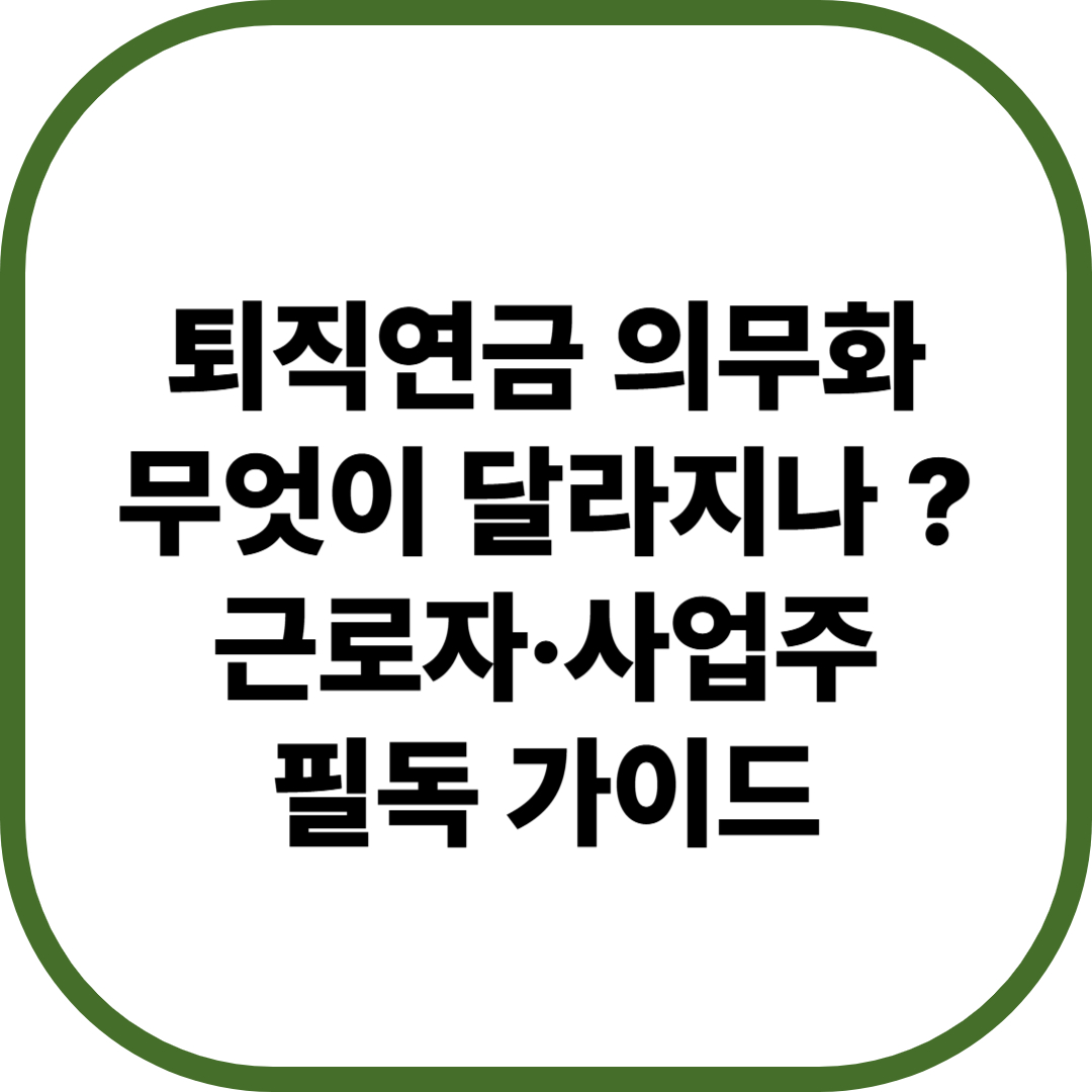 2025년부터 본격 시행되는 퇴직연금 의무화 제도. 사업주와 근로자가 꼭 알아야 할 변화와 퇴직연금 활용 전략을 정리했습니다.