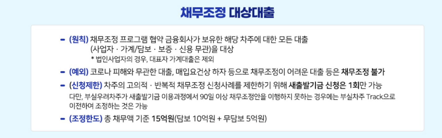 | 빚 구조 | 복수 금융기관, 고금리 대출 보유자 우선 |