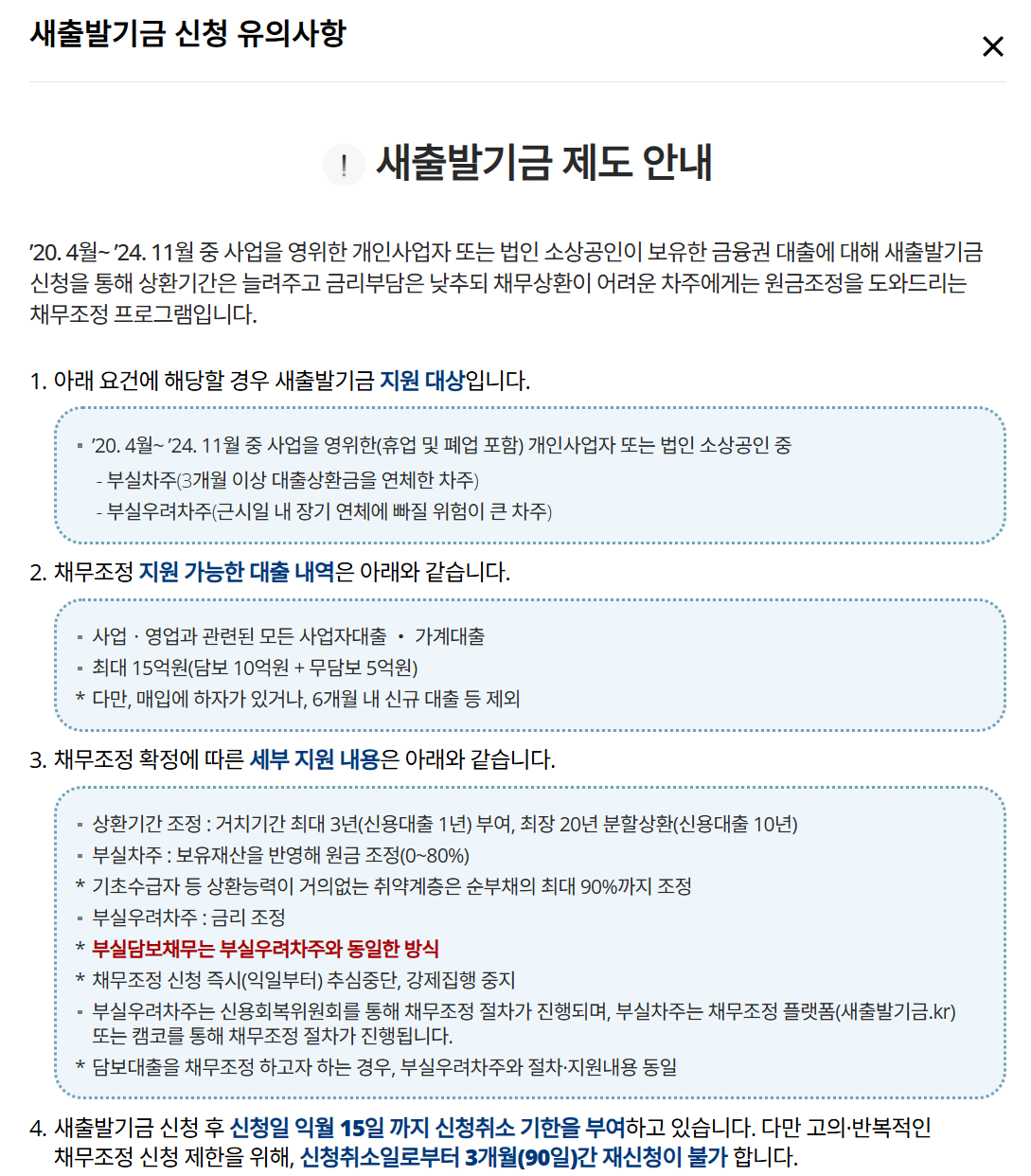코로나19, 고금리, 경기침체 3중고를 겪은 소상공인을 대상으로 빚 부담을 줄이고 재기할 수 있도록 돕는 제도죠.