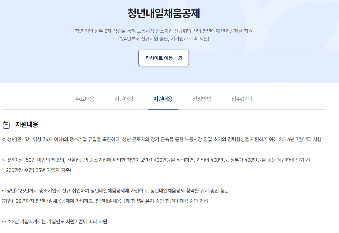 - 일정 소득 이하 청년 대상, 매월 10만원 저축 시 정부가 30만원 추가 매칭