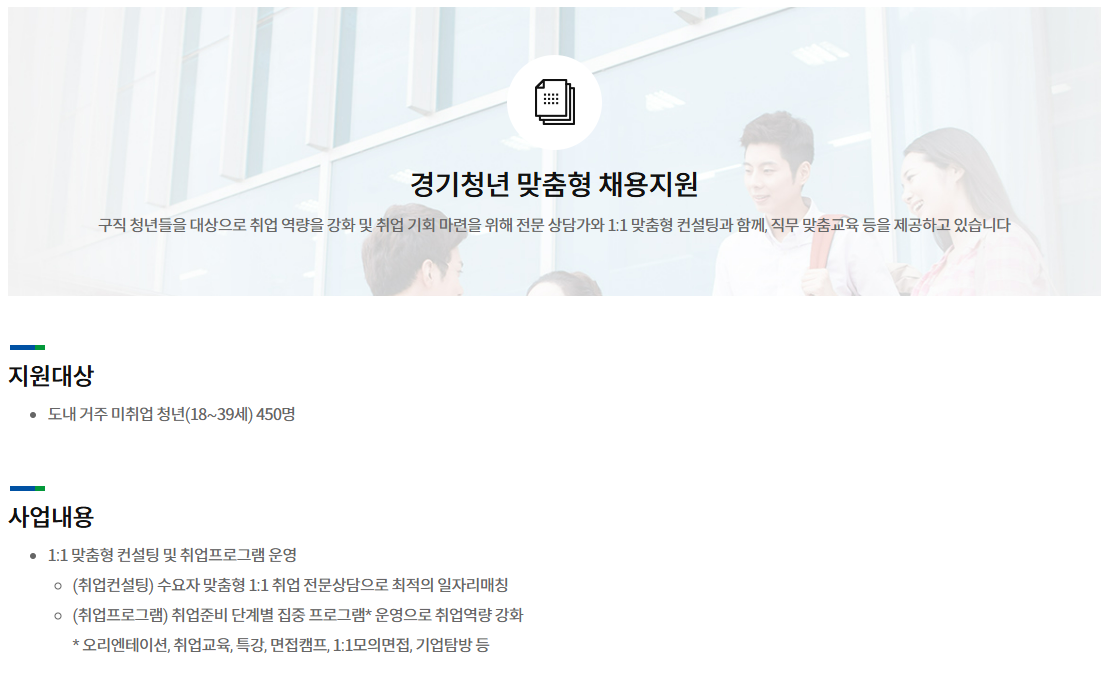 - 지역 중소기업과 연계한 맞춤형 직무 훈련 + 채용 연계형 청년지원금