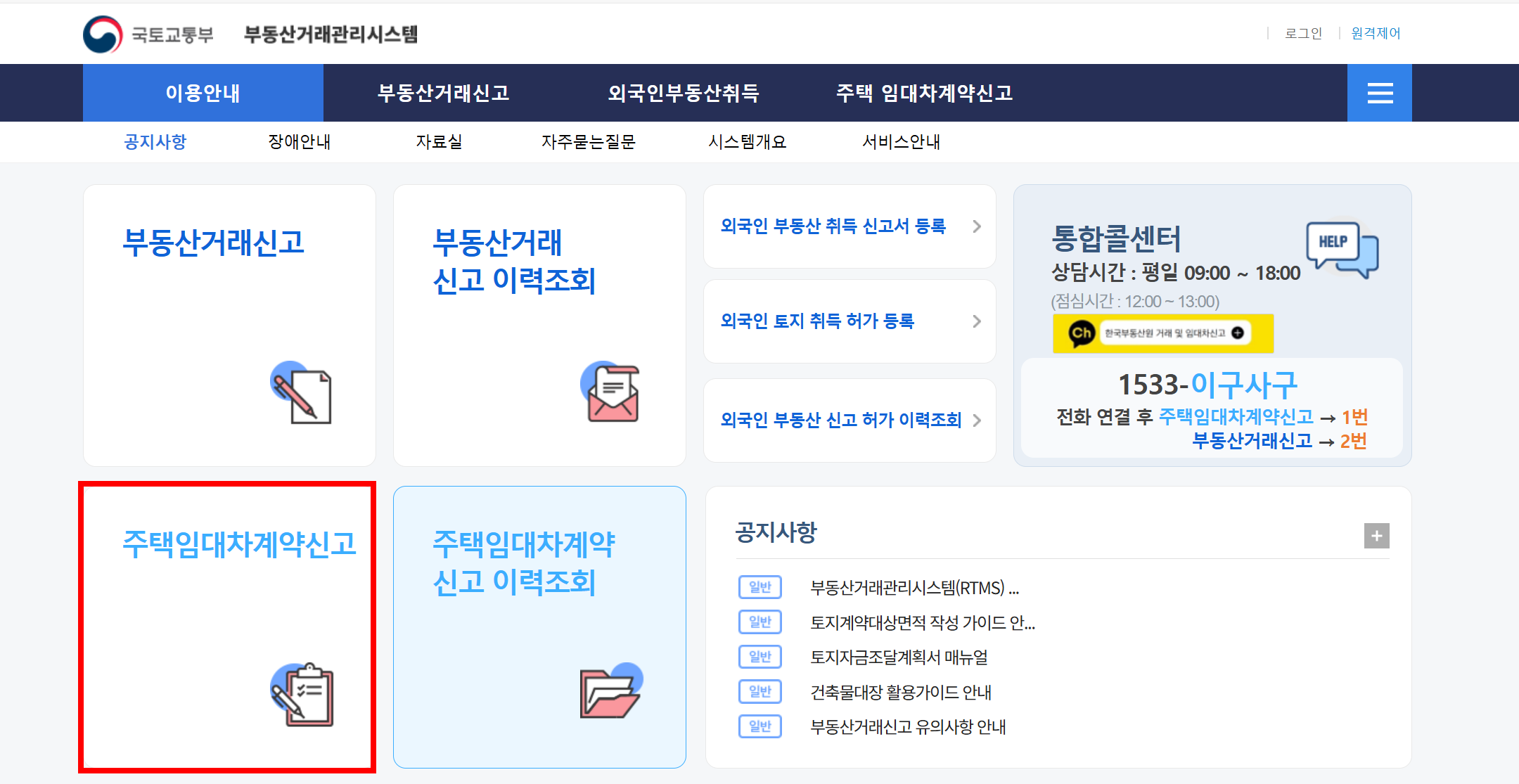 - 사이트 접속 → '주택임대차 신고' 클릭