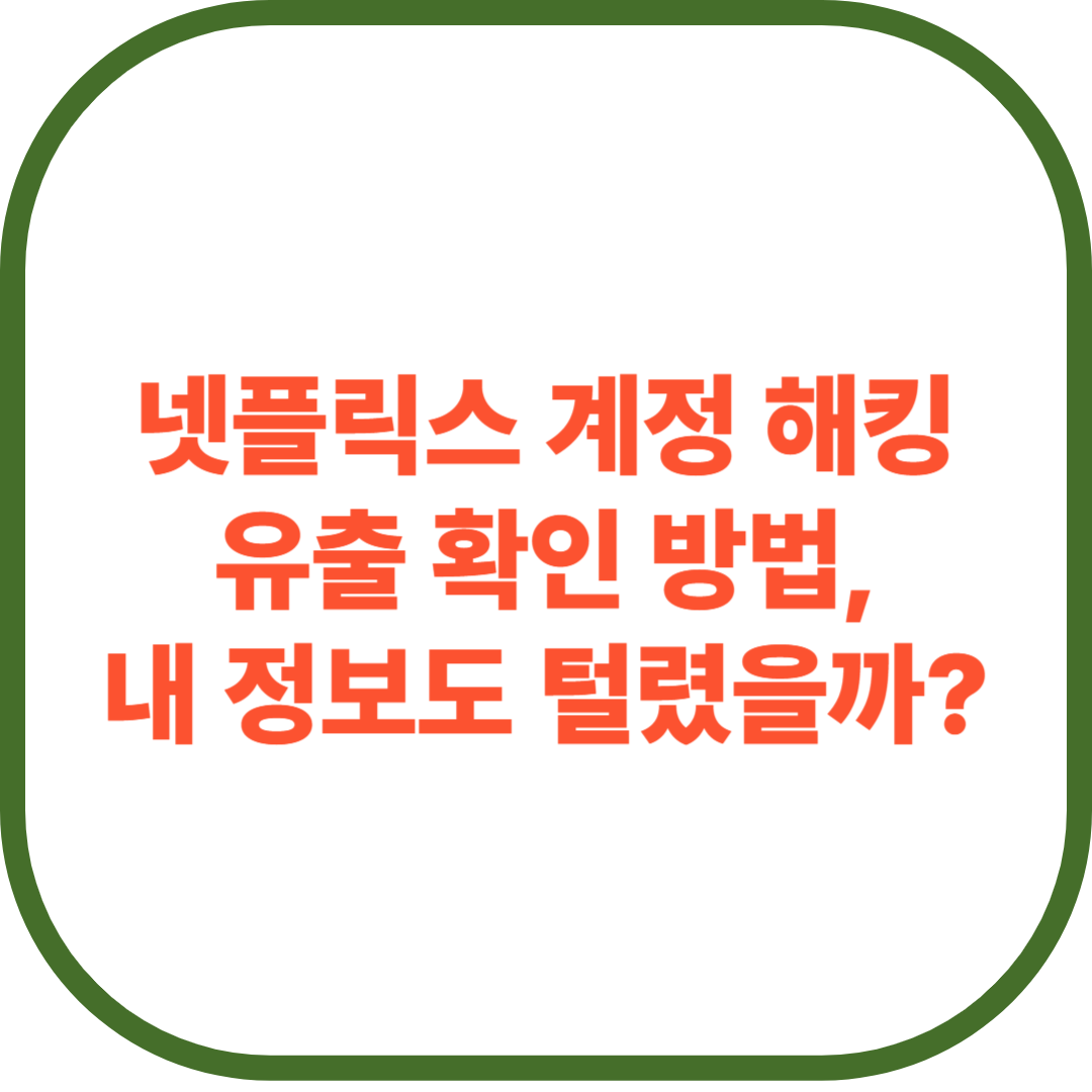 넷플릭스 계정은 단순한 영상 시청 도구를 넘어서, 나의 결제정보와 연결된 중요한 자산입니다.